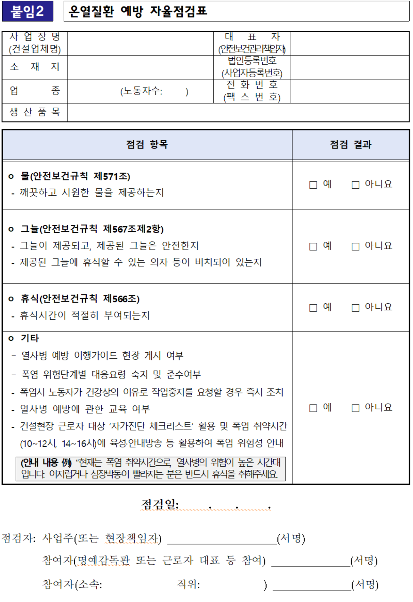 | 2022년 폭염 대비 근로자 건강보호를 위한 자율점검 및 지도·점검 가이드 |