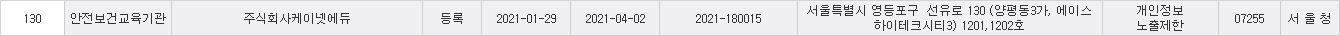(코로나 예방교육이나 개정 법 교육은 의무교육이 아니므로 방문판매자가 귀 사를 방문 후 실시하는 교육이나 상품판매 등으로 인한 코로나19 감염 피해 발생 등의 위험을 주의하시기 바랍니다) *** 첨부된 근로자안전보건교육기관의 전화번호와 교육기관이라면서 전화하는 업체간의 전화번호가 다르면 방문판매업체(특히, 무료교육)일 수 있으니 첨부된 등록교육기관 자료의 전화번호로 전화하여 등록기관에서 연락한 것인지를 반드시 확인바랍니다. *** ■ 2020.1.16.부터 교육기관의 기본인력은 교육기관 외 업무를 수행 할 경우 업무정지 또는 등록취소토록 법이 개정되어 상품판매 뿐 아니라 성희롱예방교육, 장애인인식교육, 개인정보보호교육 등 산업안전보건법에 명시된 교육 외의 교육을 할 수 없습니다 [산업안전보건법 시행령 별표 10, 12 참조] ◈ 교육기관으로부터 방문교육 전화를 받은 경우에는 교육기관 등록증, 방문강사의 강사 자격증, 강사의 교육기관 재직증명서, 교육 계획서 및 교육 교재, 견적서 등을 요청 후 그 내용을 확인하여 불이익 처분을 받지 않도록 하시기 바랍니다. (첨부 등록교육기관 명단 및 교육 강사 자격 참조) ☞ 안전보건교육을 위탁하고자 하는 사업장은 위탁교육기관이 고용노동부에 등록된 교육기관인지를 첨부된 근로자 안전보건교육기관 목록에서 반드시 확인하시기 바랍니다. ■ 문의 : 각 지역별 지방노동청에서 안전보건교육기관 등록 처리하고 있으니 궁금한 사항이 있으신 경우 아래로 문의하시기 바랍니다. 서울지방노동청 : 서울지역 (02) 2231 - 0009 누른 후 → ④번 → ①번 중부지방노동청 : 인천, 경기, 강원 (032)460-4545 => ④번 산재예방지도과 부산지방노동청 : 부산, 경남 (051) 850- 6336, 6498 대구지방노동청 : 대구, 경북 (053) 667- 6383~6384 광주지방노동청 : 광주, 전남북, 제주 (062) 975- 6330, 6393 대전지방노동청 : 대전, 충남북 (042) 480- 6307