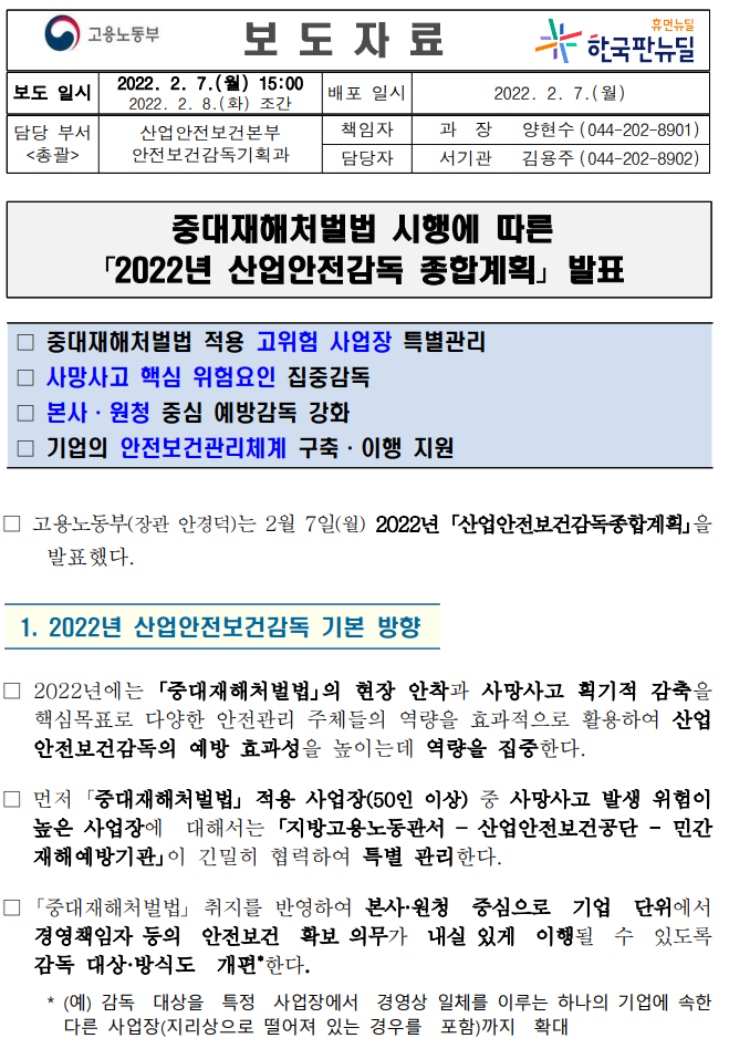 | 2022년 산업안전보건감독 기본 방향 (노동부) |